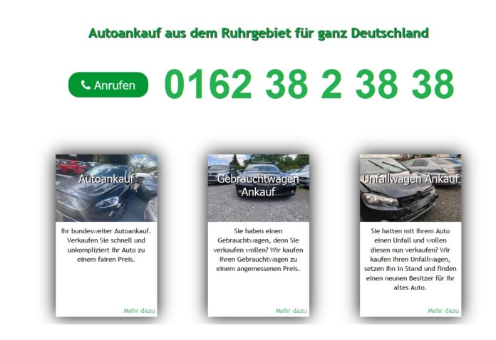 Auto verkaufen in ihrer Stadt zum Höchstpreis. Kostenlose Abholung in über all. Bei „ot-autoankauf.de“ wird es den Kunden leicht gemacht, ihren Gebrauchtwagen oder Unfallwagen zu verkaufen. Sie rufen beim Auto Ankauf schicken eine Nachricht mit der Bitte um einen Termin und erhalten diesen so kurzfristig wie eben möglich. Alternativ haben sie die Möglichkeit, im Vorfeld bereits einen konkreten Anhaltspunkt für den Wert Ihres Gebrauchtwagens zu erhalten, wenn sie die entsprechenden Parameter in die Eingabemaske auf der Webseite „https://www.ot-autoankauf.de/“ eingeben. Der genaue Preis wird dann beim vor-Ort-Termin ermittelt.